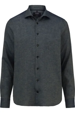 OLYMP SIGNATURE Soft Business Linnen Overhemd grijs-groen, Effen