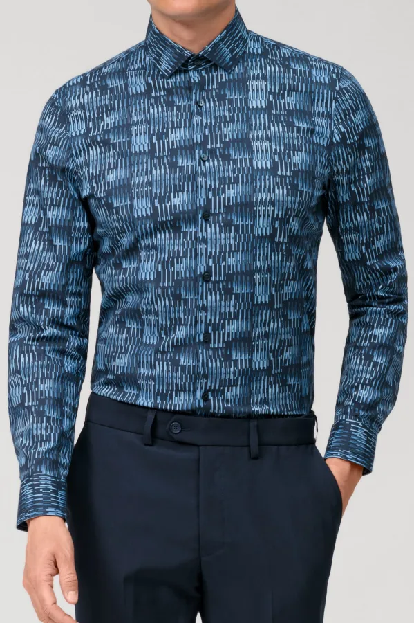 OLYMP No. Six Super Slim Overhemd marine, Motief