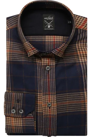Seidensticker Linnen Overhemd donkerblauw, Ruit