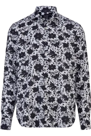 OLYMP SIGNATURE Casual Linnen Overhemd wit, Bedrukt