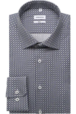 ETERNA Slim Fit Overhemd blauw, Bedrukt
