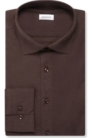 Seidensticker Flanellen Overhemd donkerbruin, Effen