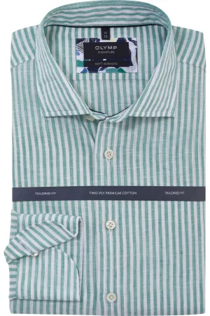 OLYMP SIGNATURE Casual Linnen Overhemd groen, Gestreept