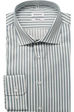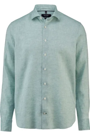 OLYMP Level Five Garment Washed Overhemd olijf, Gestreept