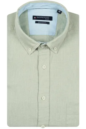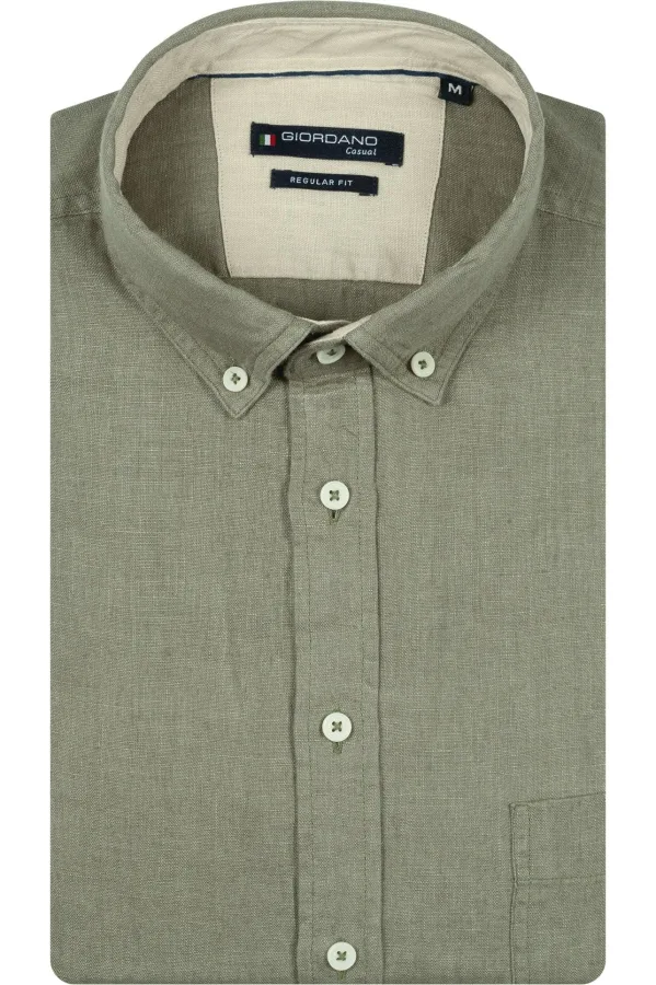 Seidensticker Linnen Overhemd olijfgroen, Effen