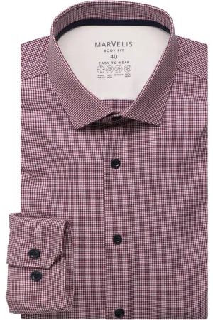 Marvelis Performance Body Fit Overhemd rood/wit, Ruit