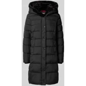 Christian Berg Woman Selection Gewateerde lange jas met imitatiebont en steekzakken