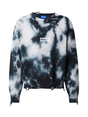 HUGO Trui ‘Sestroy’ cyaan blauw / lichtblauw / zwart / wit