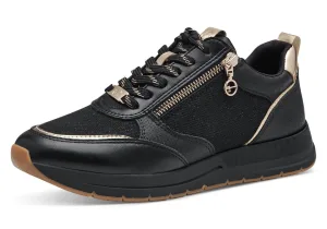 Tamaris Sneakers met sleehak vrijetijdsschoen, lage schoen, veterschoen met trendy metallic-details