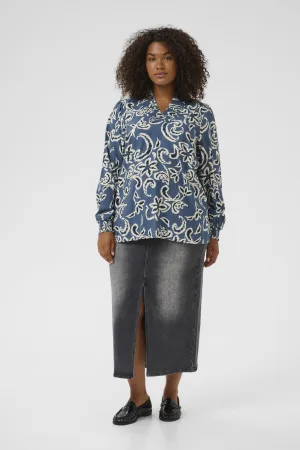 Blouse met lange mouwen Regular fit Blue/Chalk Graphic Print blue white
