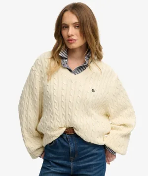 Superdry Vrouwen Slouchy Kabeltrui met Rolkraag Wit
