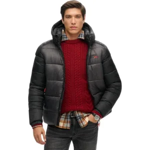 Superdry Mannen Sports Pufferjas met Capuchon Zwart