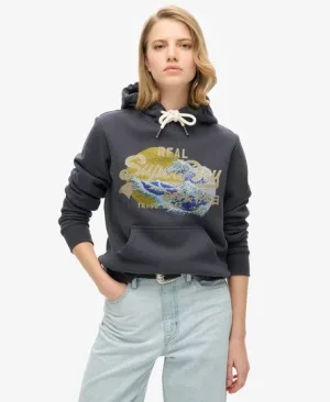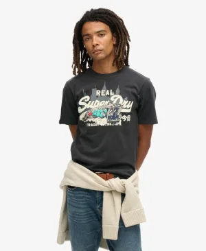 Superdry Vrouwen Biker Rock Relaxed T-shirt met Print Donkergrijs