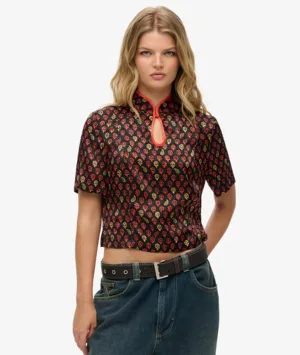 Top van Jacquard met Mandarijnkraag Black