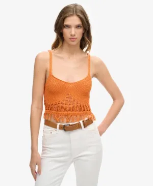 Superdry Vrouwen Vintage Gehaakte top met Franje Oranje
