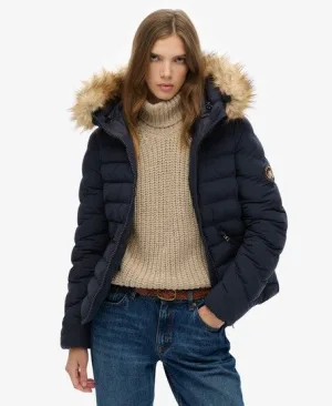 Fuji Gewatteerde Jas met Bontkraag Blauw