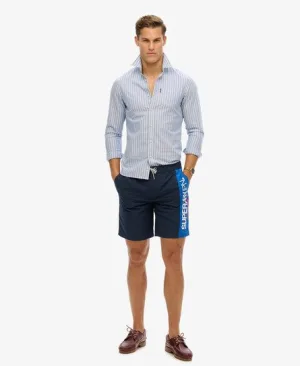 Superdry Mannen Gerecyclede Sportswear Boardshort met Logo – 48 cm Blauw