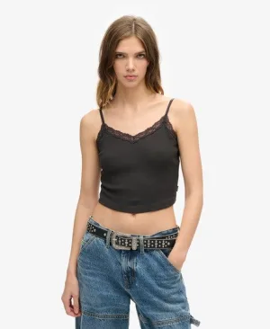 Superdry Vrouwen Kort Athletic Essentials Camitopje met Kanten Rand Zwart