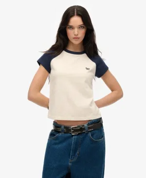Superdry Vrouwen Ruimvallend Geborduurd T-shirt met V-hals Cream