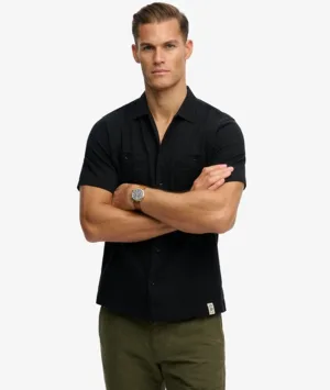 The Merchant Store – Gestructureerd Overhemd met Korte Mouwen Black