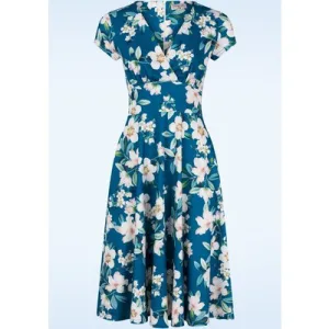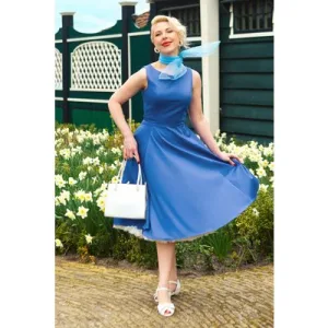 Winnie Ditsy midi ballon jurk in wit en blauw