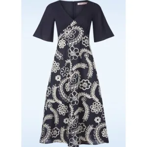 Lori Pencil jurk in navy en wit