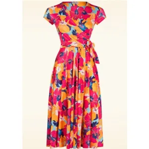 Topvintage exclusive ~ Joliena Floral swing jurk in lila