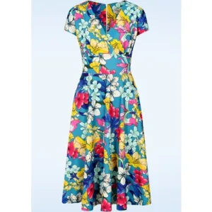 Gracie tropical maxi jurk in kobalt blauw en multi