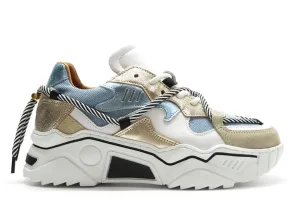 DWRS BONNEY denim chunky leren sneakers goud