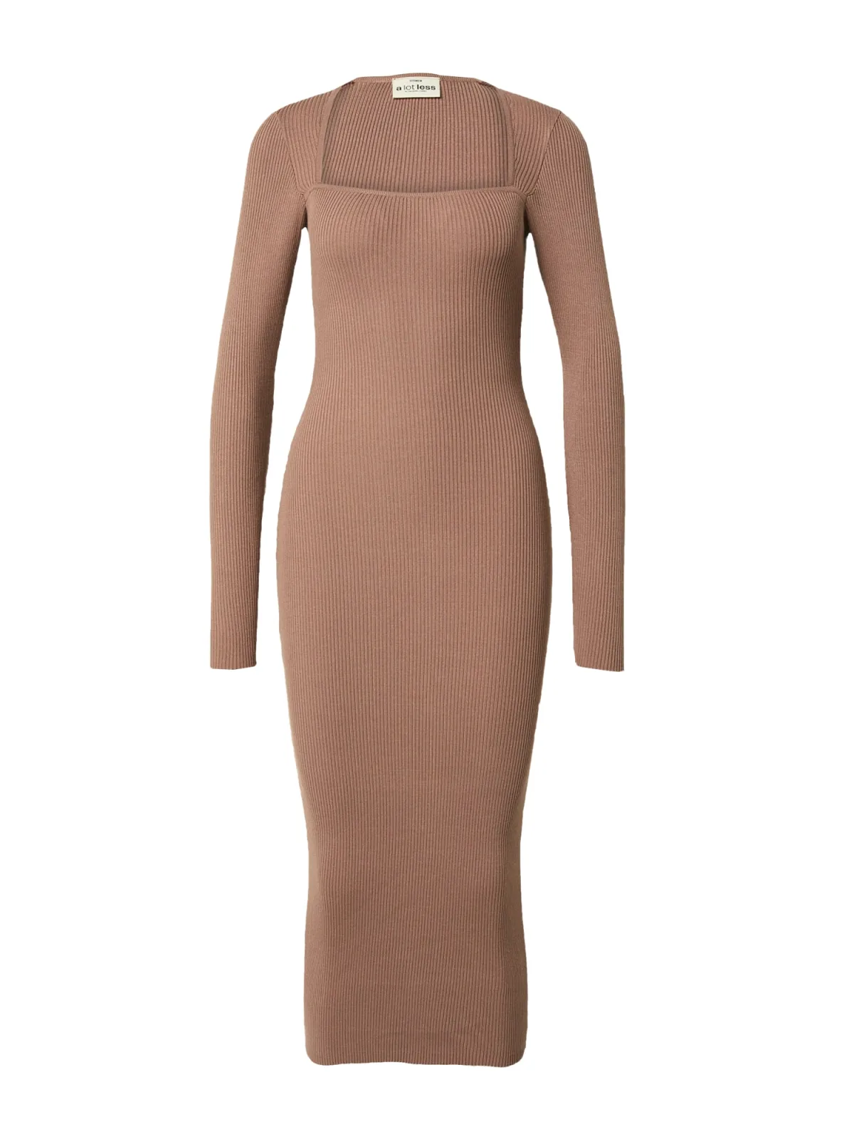 A LOT LESS Gebreide jurk ‘Valerie’ lichtbruin