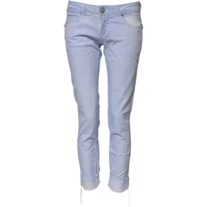 Acht Lichtblauwe Katoenen Slim Fit Lage Taille Spijkerbroek