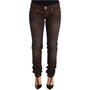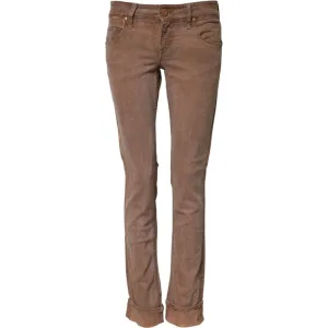 Acht Bruine Katoenen Slim Fit Denim Lage Taille Jeans