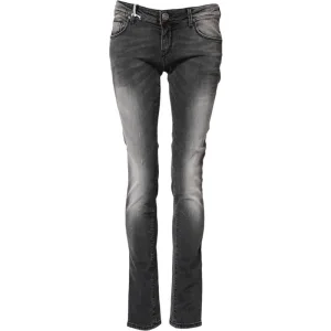 Acht Donkergrijze Katoenen Slim Fit Denim Lage Taille Jeans