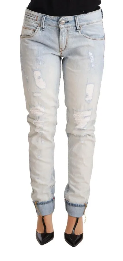 Acht Skinny Jeans Met Gescheurde Patches