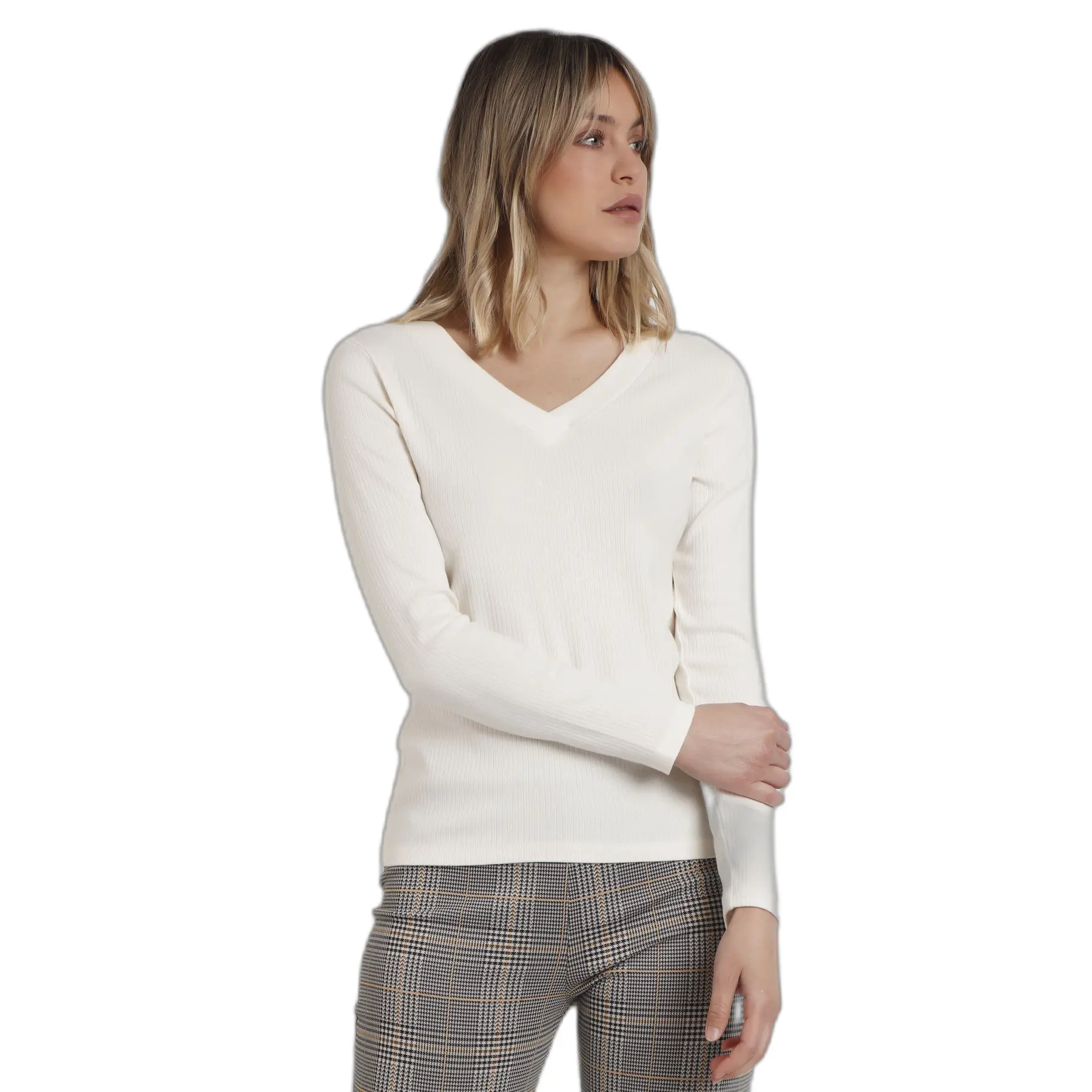 Warme lange mouwen T-shirt met geribde opening voor dames Admas