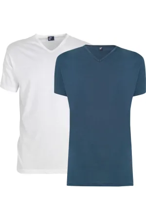 Alan Red T-Shirt V-hals Dubbel pak wit/blauw, Effen