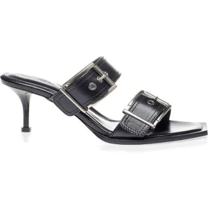 Alexander McQueen Zwarte Leren Stiletto Hakken Sandalen