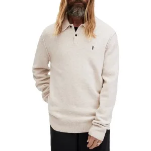 AllSaints Statten Ls Polo Oatmeal White