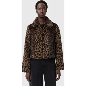 AllSaints Saye Faux Fur Jacket Leopard Brown
