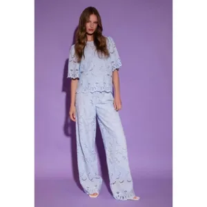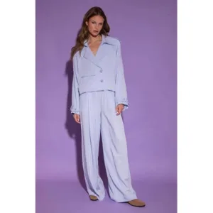 AMAYA Amsterdam satijnen high waist broek lichtblauw