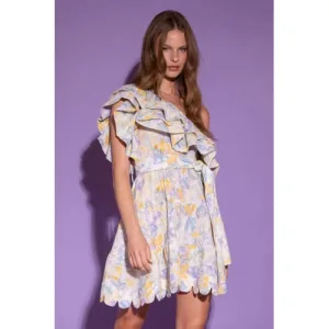 AMAYA Amsterdam gebloemde one shoulder jurk paars