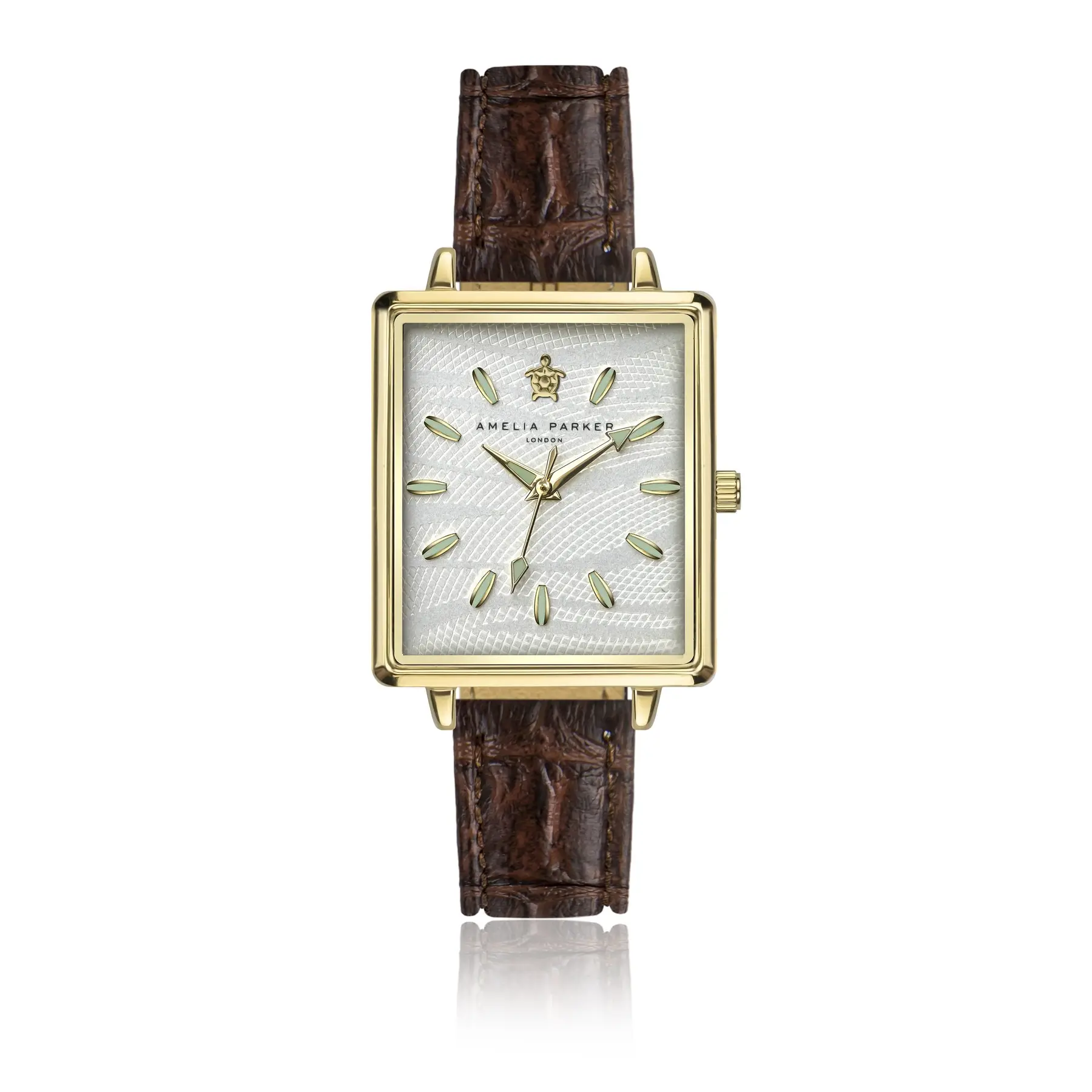 Leren krokodillenhorloge voor dames Amelia Parker Desert