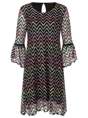 Ana Alcazar Jurk ‘Wavine’ ecru / lichtgroen / rosa / zwart