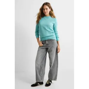 Anytime gebreide trui met pofmouwen lichtblauw