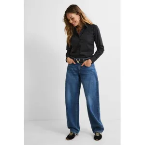 Anytime denim look wide leg donkerblauw