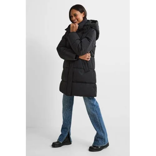 Anytime midi gewatteerde jas zwart