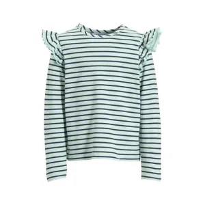 Anytime longsleeve met ruffles grijsgroen / donkerblauw