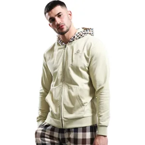 Aquascutum Active Fz Club Check Hood Beige Hoodie Met Rits