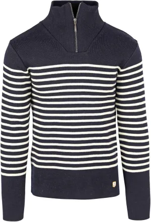 Armor-Lux Camionneur Half Zip Trui Wol Strepen Navy