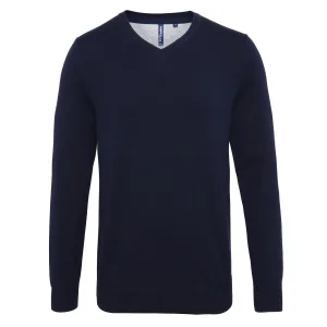 Asquith & Fox Herenkatoenrijke V-hals trui (Franse marine)